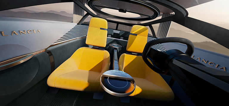 Cada detalle de Lancia Pu+Ra HPE celebra la belleza de los clásicos atemporales. El color Progressive Green es un homenaje al Lancia Flaminia Azzurro Vincennes, la parte delantera retoma la histórica rejilla de Lancia, el nuevo logotipo representa los símbolos históricos de la marca y los asientos están inspirados en los sillones Maralunga firmados por Vico Magistretti para Cassina.